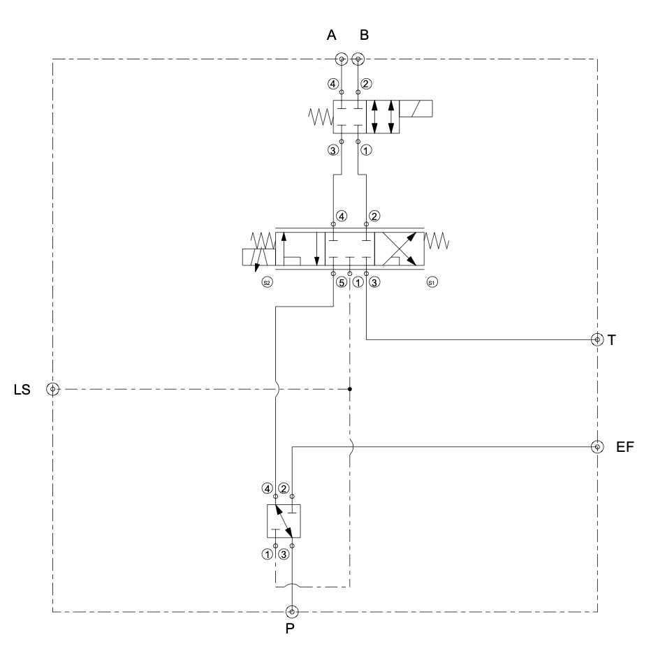 - Identify the two hydraulic lines running to the steering ram. Add a T-piece to each line and run them to ports A and B on the block. The specific order does not matter at this stage.