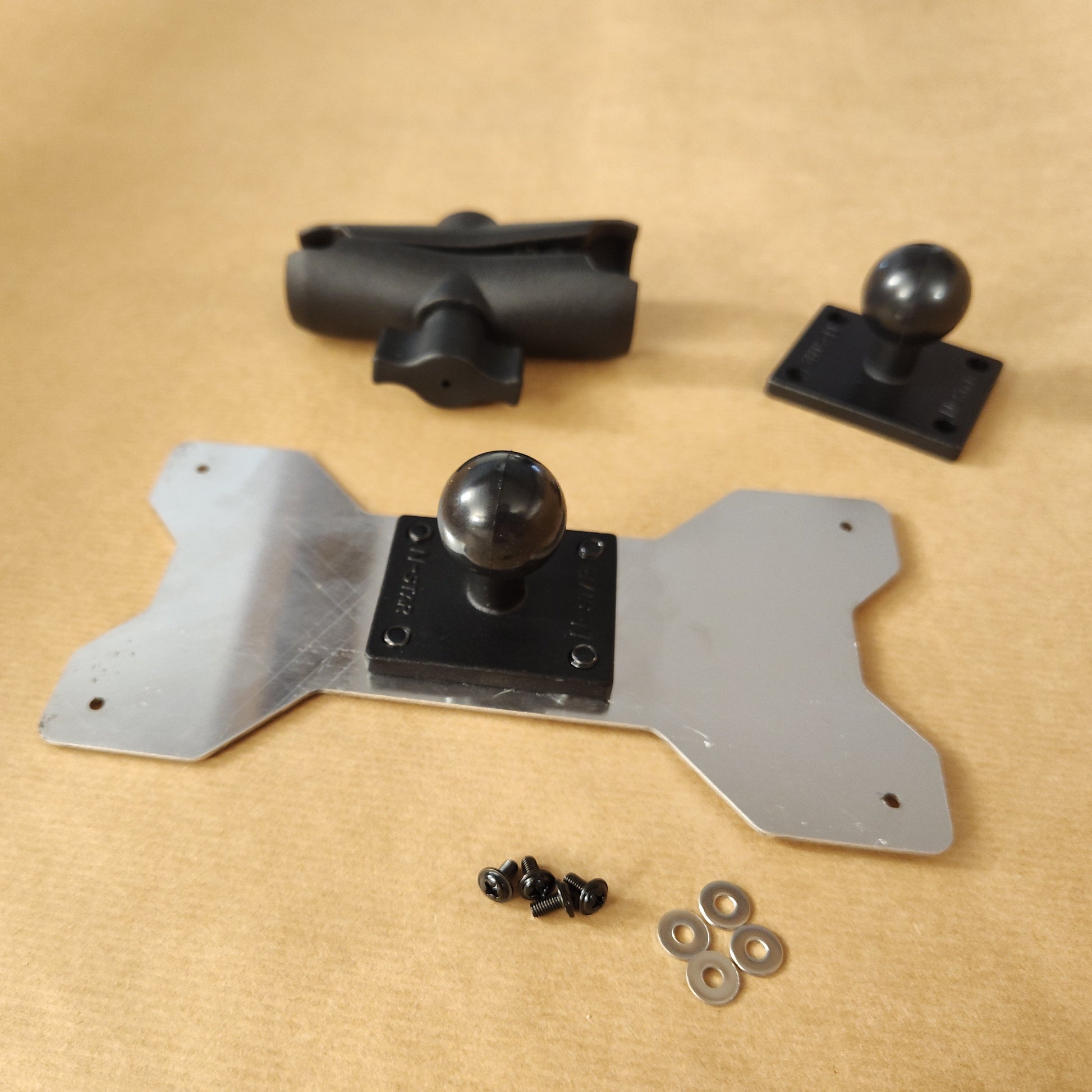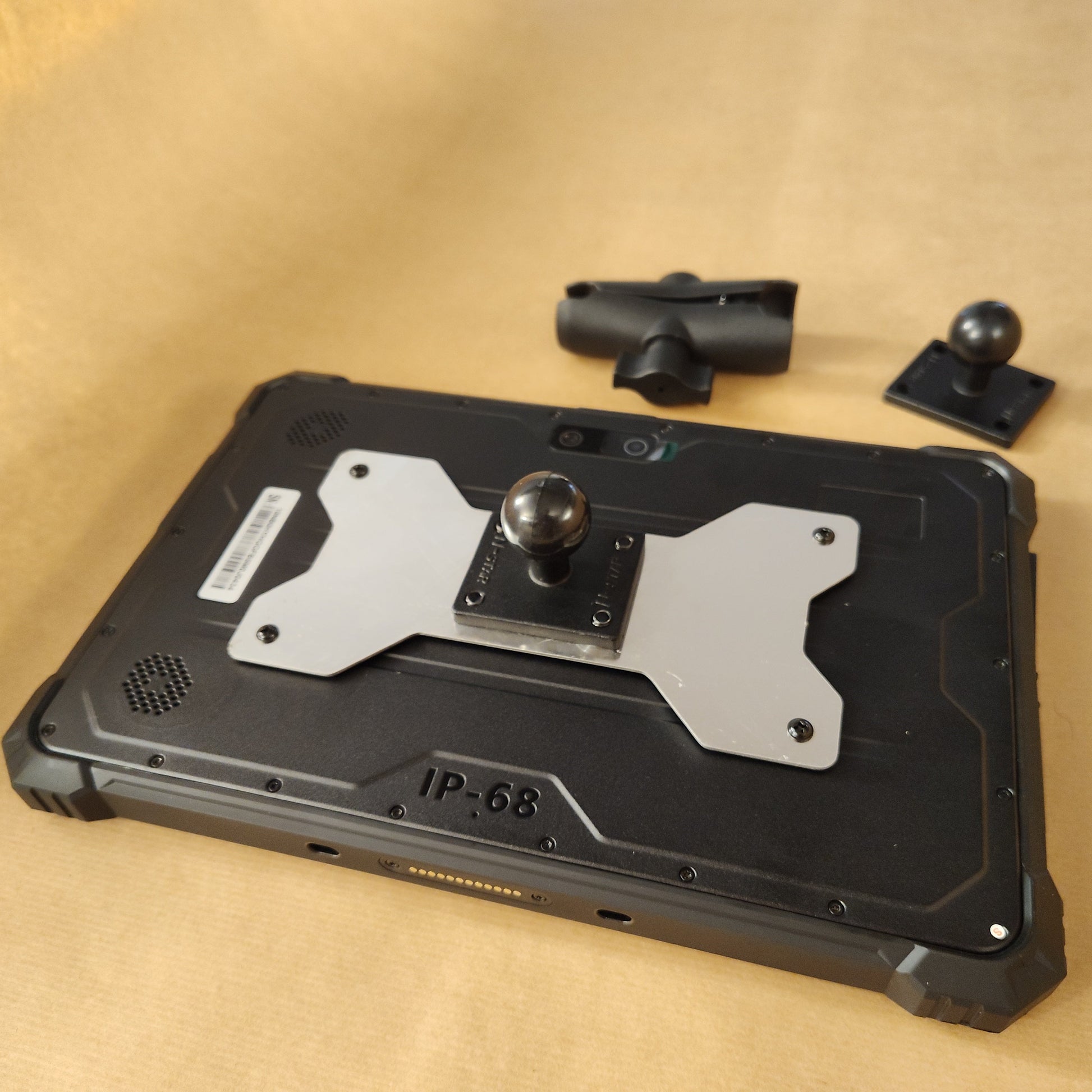 Mounting plate, screws, 25mm ball mounts and 9cm clamping arm for our rugged tablets.